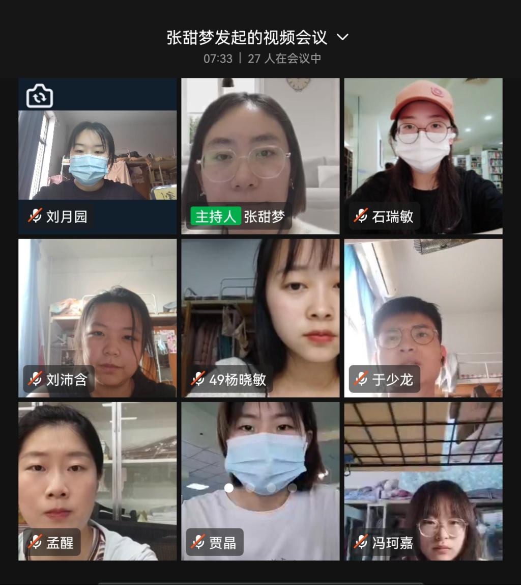 张甜梦书记带领师生党员学习了中共中央政治局常务委员会召开的疫情防控会议精神、河南省委新冠疫情防控工作第十七次专题会议精神,张甜梦进一步强调了做好疫情防控工作的重要性,鼓励师生党员要坚定信心,同舟共济,团结一心,做好疫情防控工作。员工党员孙佳敏和齐晓可同学分享近段时间自己在疫情防控工作中的担当与作为。