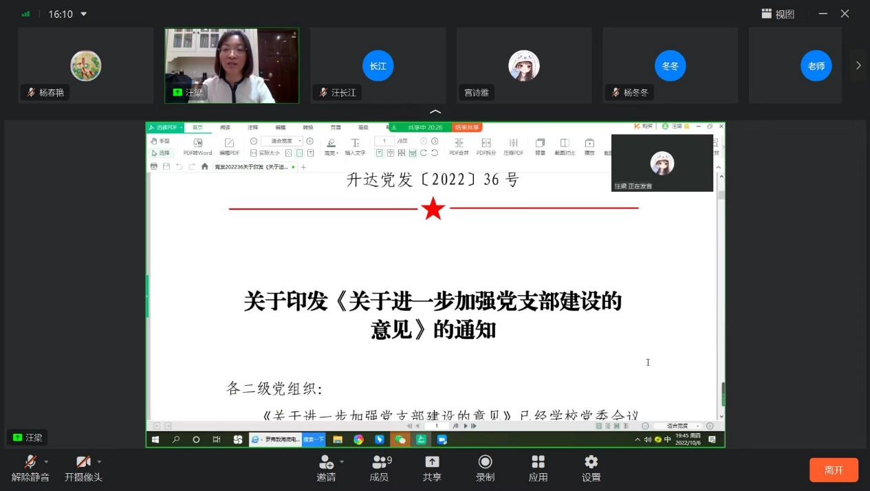 10月7日晚,365VIP英国上市官网汉语言文学教研室党支部通过钉钉召开《公司关于进一步加强党支部建设的意见》学习会议。会议由书记汪梁主持,汉语言文学教研室全体党员参加了此次会议。