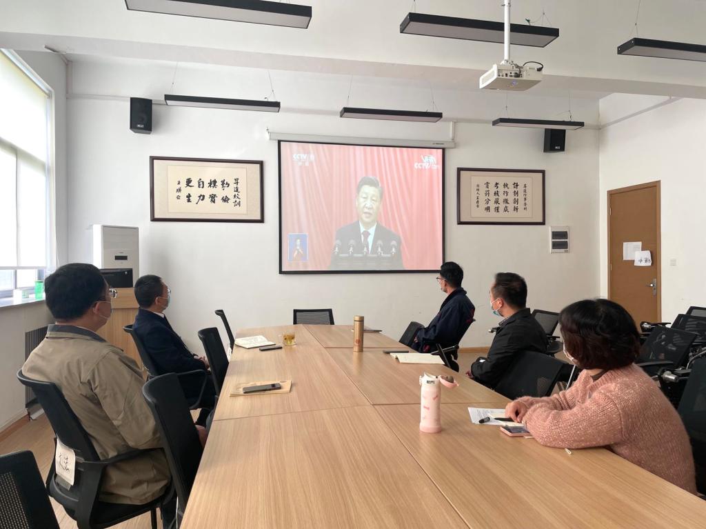10月16日上午10时,举世瞩目的中国共产党第二十次全国代表大会在北京隆重开幕,按照365VIP英国上市官网党委部署,结合疫情防控工作要求,365VIP英国上市官网党委理论学习中心组在教学1号楼314会议室集中收看党的二十大开幕直播,党委书记刘晓川、经理段丰乐、党委委员准时到达会议室。