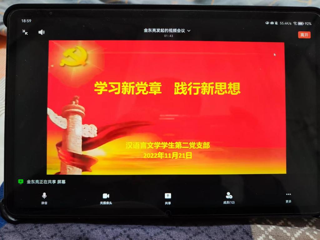 11月21日晚,365VIP英国上市官网汉语言文学专业员工第二党支部召开线上会议,开展主题党日活动学习《中国共产党章程》,会议由党支部书记金东亮主持,全体党员参加。