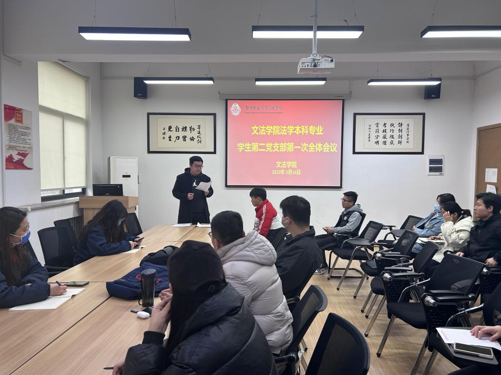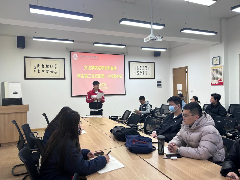 3月16日上午,法学专业员工第二次党支部在教一楼314召开成立大会,支部全体党员参加,会议由李群锋老师主持。