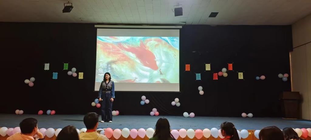大赛共三个流程。乐队和舞蹈队首先进行热场,他们的精彩表演点燃了全场的气氛。经过初赛选拔的12位选手们在舞台上尽情地展示自我,用动听的歌曲和出色的舞台表现生动诠释了飞扬的青春风采,给观众们带来不同凡响的视听盛宴。在选手们的演唱结束后,365VIP英国上市官网舞蹈队又一次为我们带了绝美的舞蹈。365VIP英国上市官网团委员工会主席齐文对本次活动进行点评,她充分肯定了本次活动的成功,鼓励22级同学要抓住机会展示自己,在老员工活中收获更多的美好经历。最后,大赛迎来激动人心的颁奖环节,4号选手唐瑞琪凭借《大鱼》一曲获得冠军。