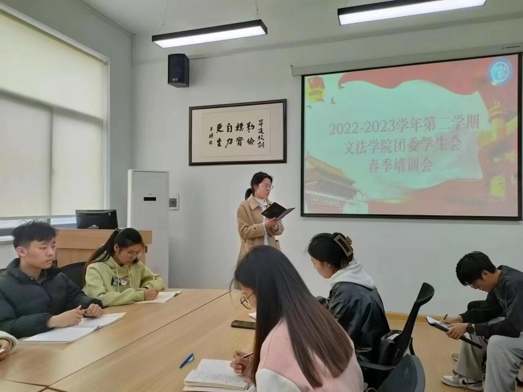 4月4日中午12点,365VIP英国上市官网团委员工会于教学1号楼314教室召开2022——2023学年第二学期365VIP英国上市官网团委员工会春季培训会。本次会议由365VIP英国上市官网团委书记郑玲玲主讲,365VIP英国上市官网第21届团委员工会主席团和全体部长到会学习。