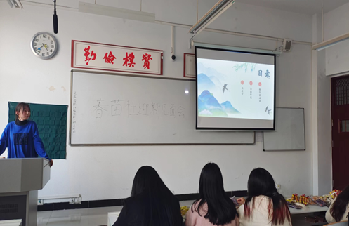 李晨阳宣布欢迎会开始,并对新社员的到来表示欢迎,接着从学习民俗文化的意义、方法、宗旨和职能等方面详细介绍春苗社,中间穿插小游戏活跃气氛,以促进社员之间交流联系。孟佳慧提到,大家应多多了解自己身边的民俗文化,提高思考、交流协作的能力,最后孟佳慧呼吁大家从生活中寻找民俗文化并深入了解民俗文化。此外,社团各部门部长详细介绍本部门的职能,加深新成员对社团了解,并组织新社员进行民俗知识抢答、才艺展示等,现场氛围轻松融洽。欢迎会在一片欢声笑语中圆满结束。