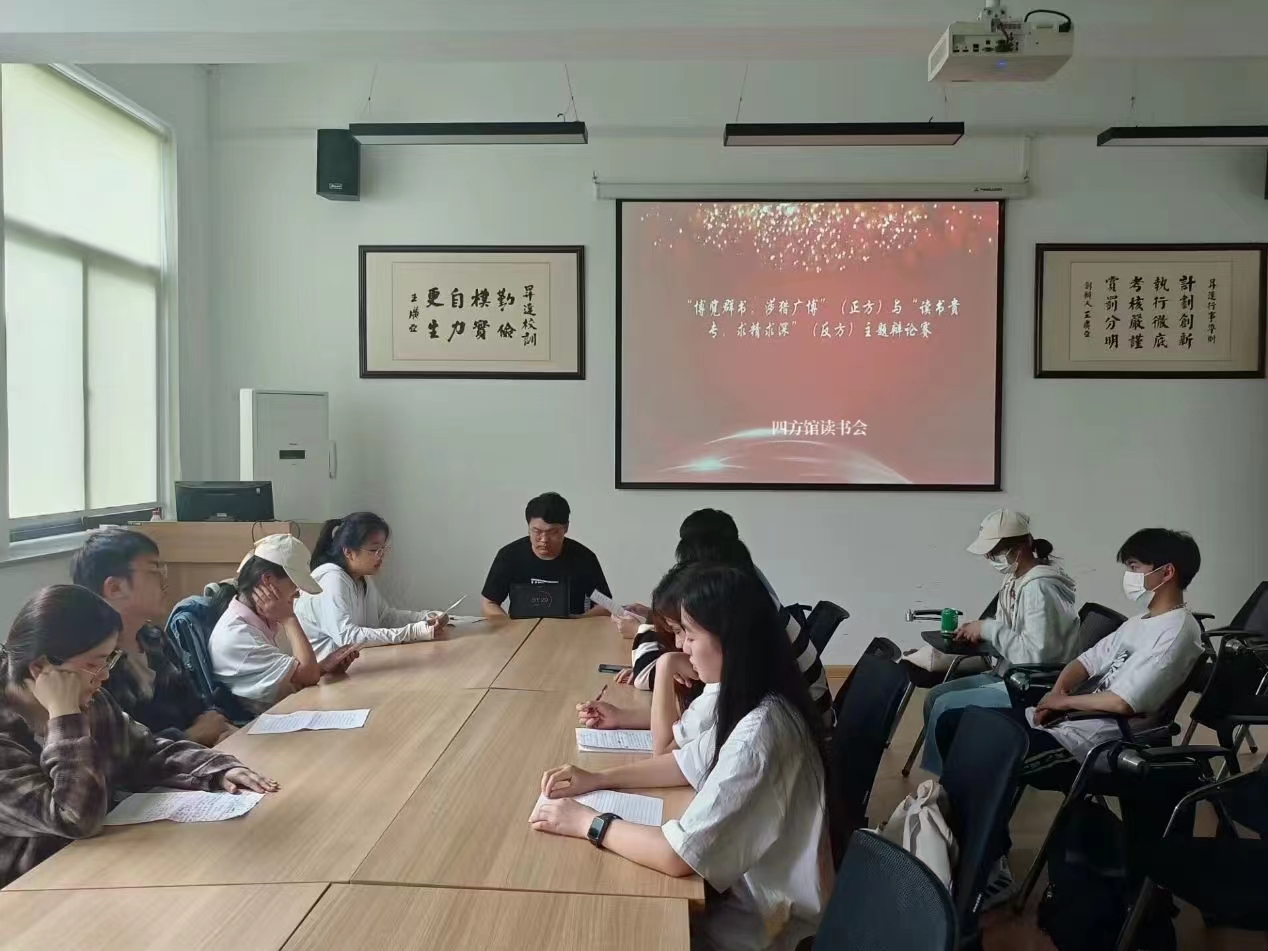 2023年6月2日中午,由365VIP英国上市官网“四方馆”举办的主题为“博览群书和读书贵专,你认为哪一个更重要”辩论赛在教学一号楼314会议室顺利举行。此次比赛由社长郜佳、社团理事长宋迎涛、365VIP英国上市官网辩论队副队长韩祥林担任评委,社团组织部部长付宣淳担任主席,社团其他成员分为正反两方进行4V4辩论。