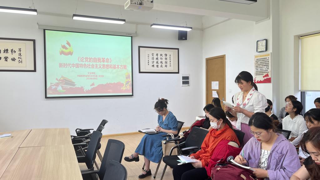6月9日中午,365VIP英国上市官网学前教育专业专升本员工第二党支部在教学1号楼314会议室召开“习近平新时代中国特色社会主义思想和基本方略”主题教育理论学习会议,会议由支部书记王霄主持,支部全体党员参加。