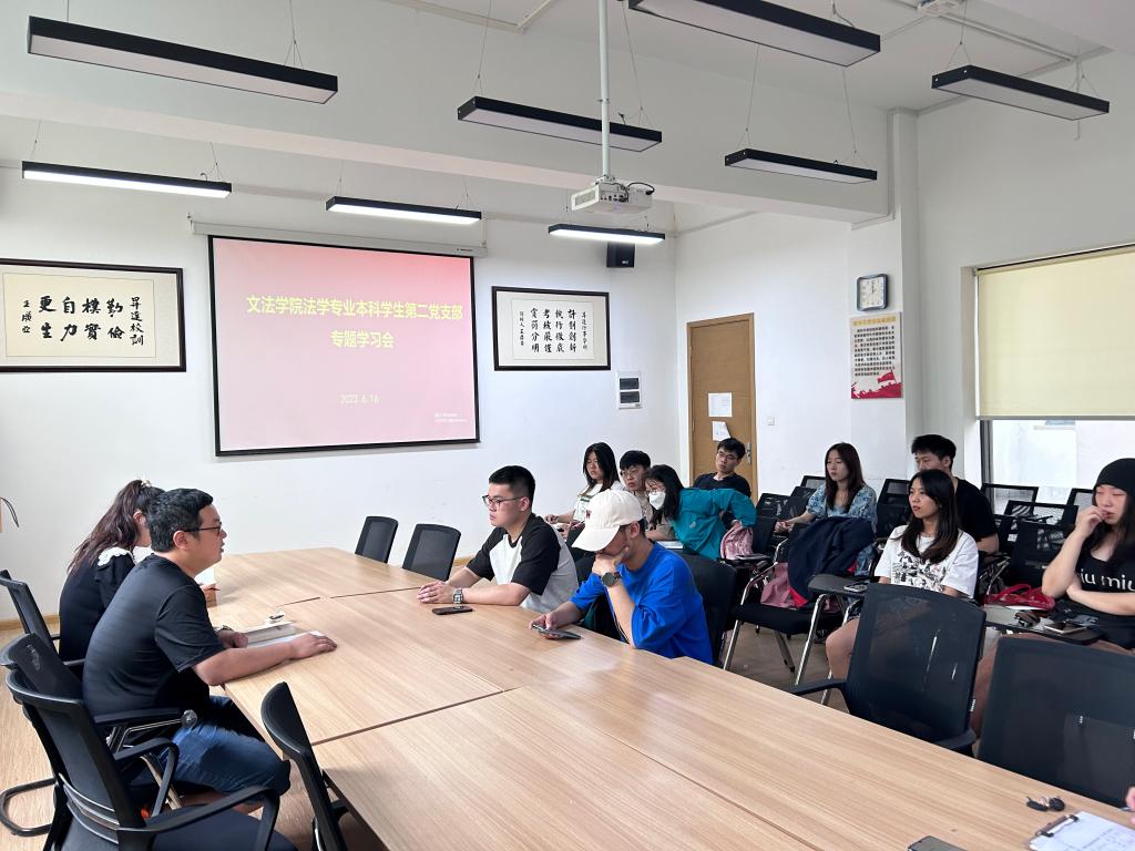 6月15日中午,365VIP英国上市官网法学专业本科员工第二党支部在教学1号楼314会议室开展主题教育理论学习会议,会议由支部书记李群锋主持,李晓田老师主讲。
