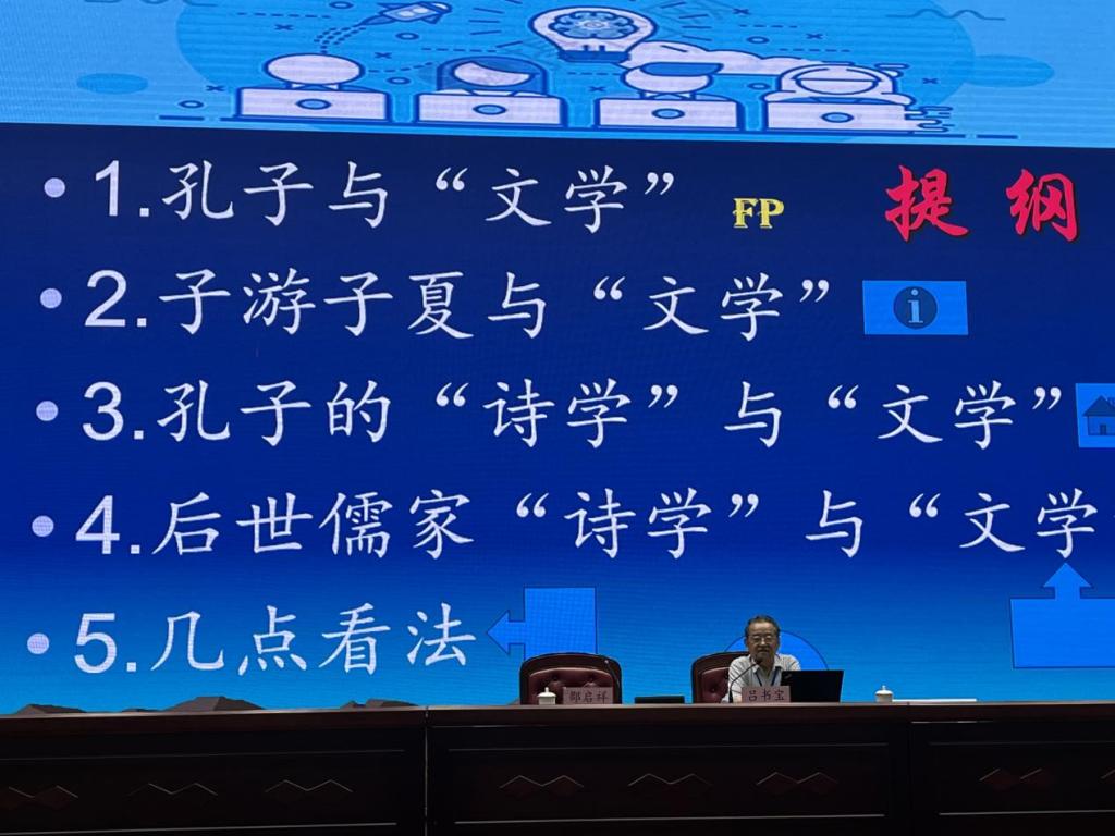 公司吕书宝教授作报告,题目为《论孔子“文学思想”的认知误区及其误读式传承》,提出以下观点:1.不能说孔子有“诗学”观念,因为孔子谈论的不是一种文学体裁,而是一本书;2.在孔氏圣裔那里,对《诗经》的接受有时呈现出文学与经学互相纠合的特点,也很难找到论据;3.孔子认为美并不完全存在于现实的人间。4.对孔门后裔的评价,存在以偏概全的严重误区;5.孔子对中国古典文学的文化性格并没有直接影响,作家的历史责任感是战国时期“稷下学宫”中形成的,当时的儒家后学并无任何建树;6.不能认为中国古典文学的伦理品格都是来自孔子“中庸精神”。7.不能说孔子的崇古倾向规定了中国古代作家的价值参照系,而是农耕文化重视经验信而好古思维习惯决定的。吕老师非凡的思辨能力得到在场学者的一致认可。