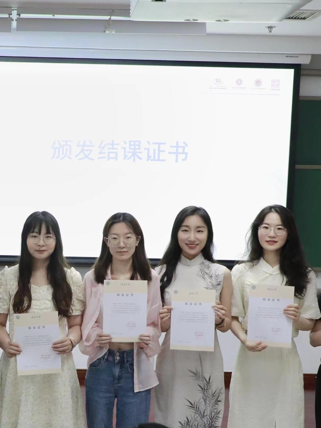 公司教师韩笑君认真修习全部课程,于7月6日晚参加暑期公司设立的南亚文学论坛,在论坛中分享自己的学术观点,与暑期公司老师和学员进行深入的沟通和探讨,在交流中碰撞思维的火花,进一步完善学员论文。7月7日下午,北京大学外国语公司副经理吴杰伟教授和北京大学东方文学研究中心副主任林丰民教授为公司教师颁发结业证书。