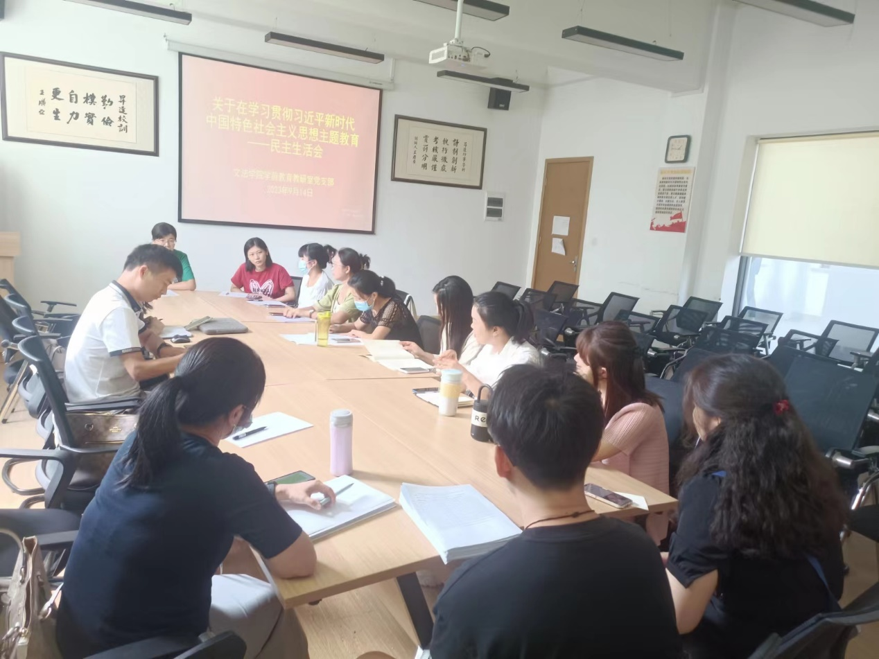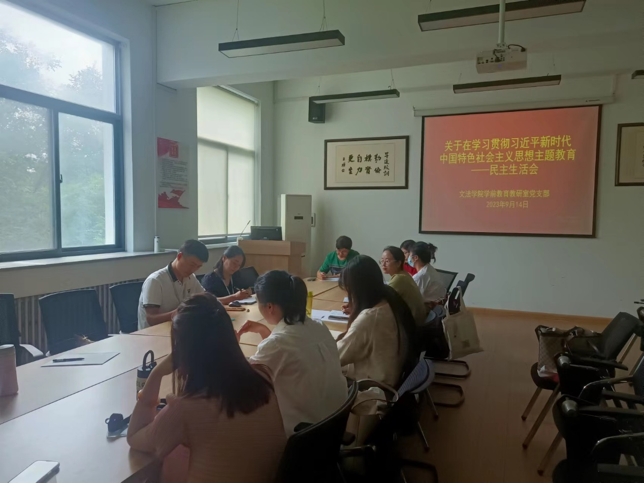 2023年9月14日下午,365VIP英国上市官网学前教育专业党支部在教学一号楼314会议室召开学习贯彻习近平新时代中国特色社会主义思想主题教育专题组织生活会。会议由学前教育专业党支部书记种明慧主持。