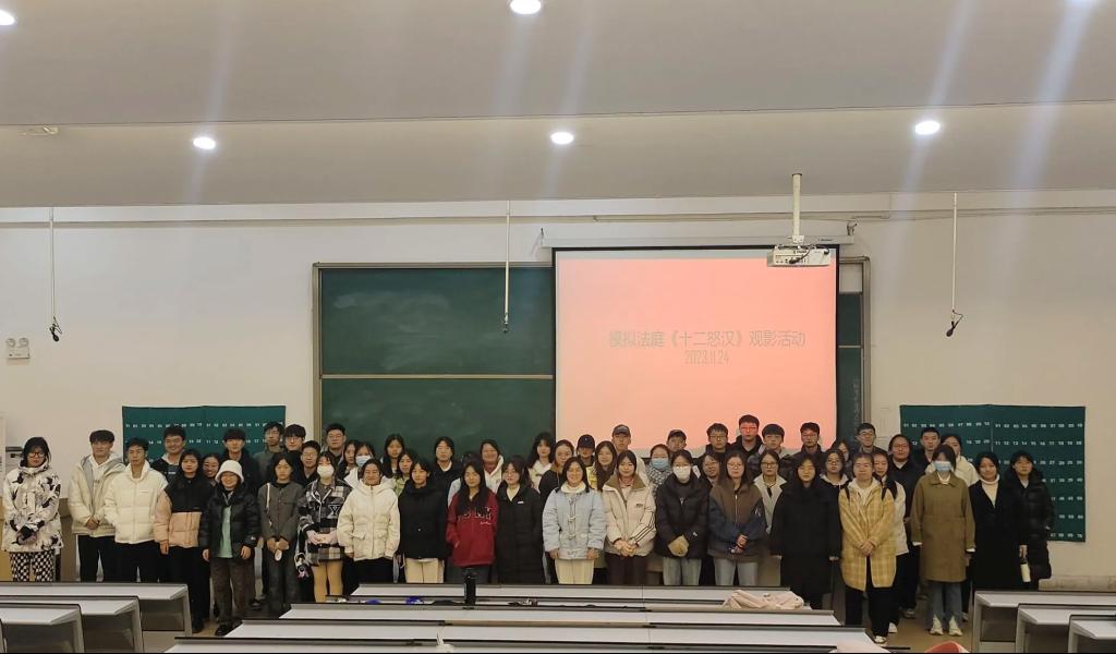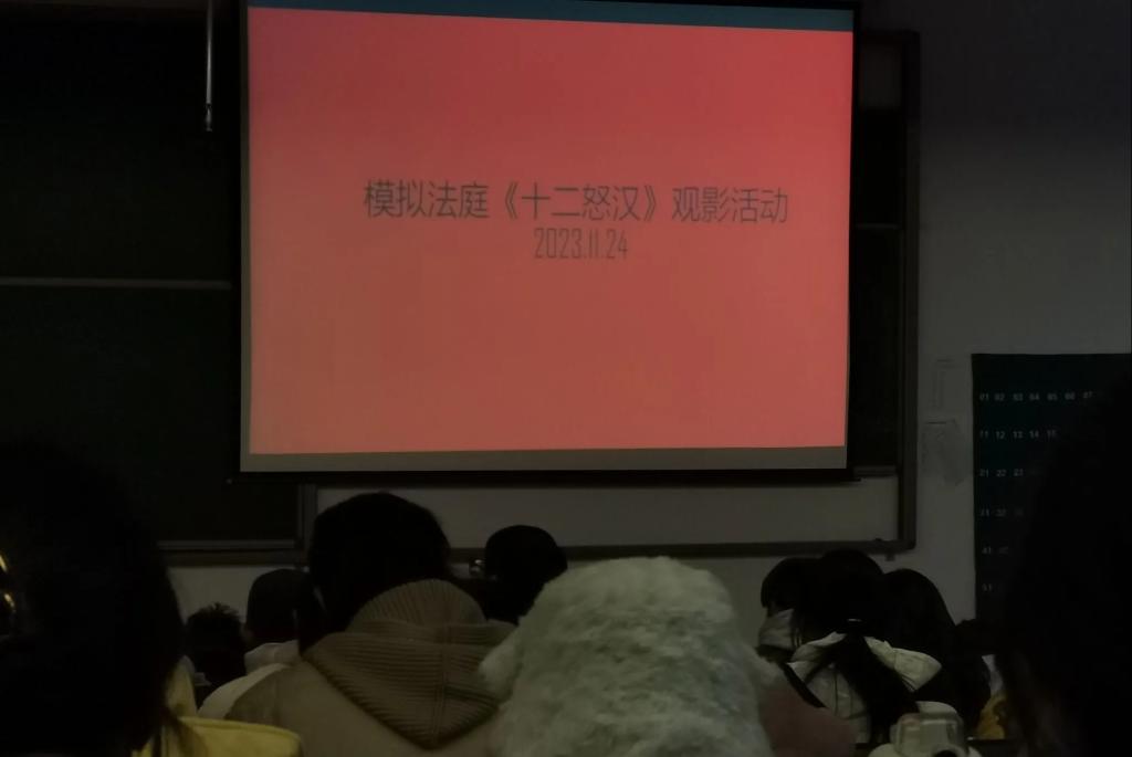 为引导法律专业员工树立求真与审慎态度,宣扬法律制度对个体的尊重和对人性的关怀,增强模拟法庭新干事法制素养,从而展示公司法律类社团对公司员工素质培养方面引领作用,2023年11月24日,第二十届升达模拟法庭于教学一号楼118阶梯教室开展影片《十二怒汉》观影活动。包括模拟法庭庭长蒋园园在内的72人集中观看。