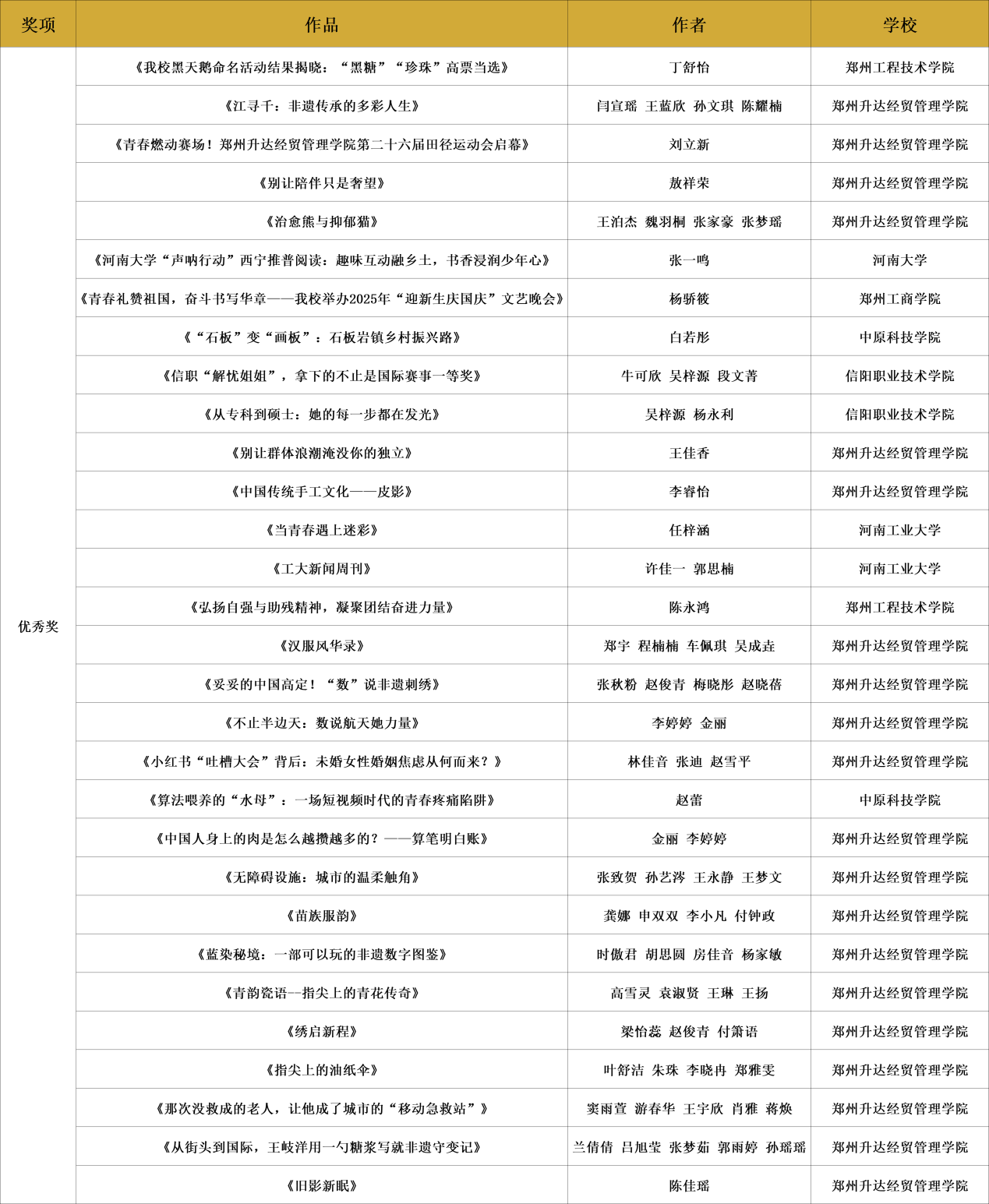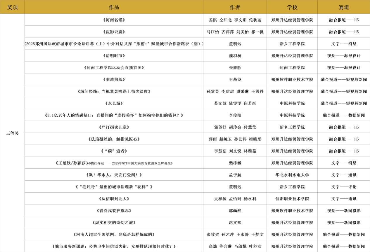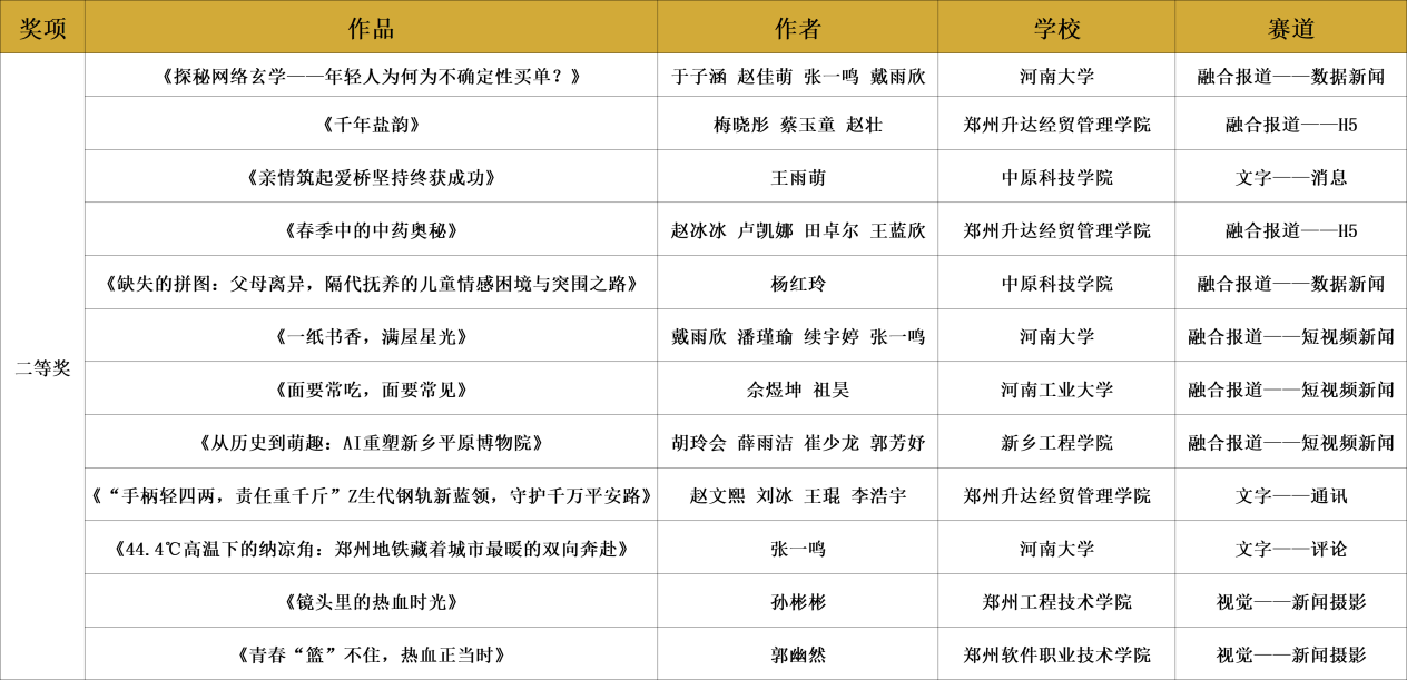 再次衷心感谢所有参赛者的热忱投稿与倾情创作!为确保评审工作公平、公开、公正,大赛由媒体支持单位河南广播电视台大象新闻客户端牵头,邀请一线媒体人及业内专家组建专业评审团。历经初审、复审、终审三轮严谨遴选与综合评定,共评选出获奖作品75件(含一等奖8件、二等奖12件、三等奖20件、优秀奖30件、最佳人气奖5件)及优秀指导老师17名。