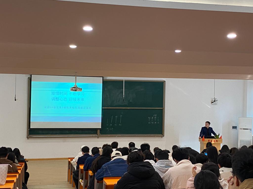 2023年12月26日,公司13届法学优秀员工段新江在教学2号楼106为法学专业员工作了《人生如登山一样,只要坚持,终会成功》的报告会,法学专业200余名员工参加,会议由法学教研室主任刘凡义主持。