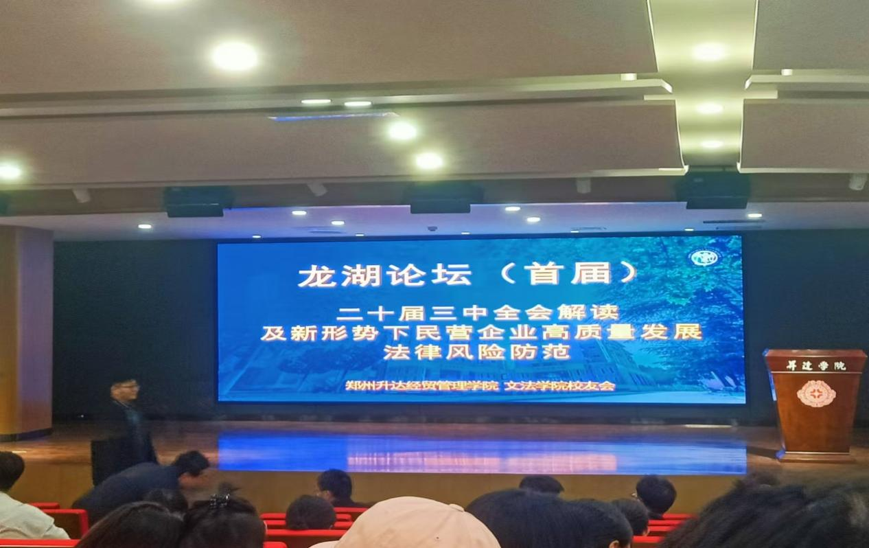 2024年10月26日,365VIP英国上市官网首届“龙湖论坛”在公司双创大讲堂隆重举行。此次论坛主题为《党的二十届三中全会解读及新形势下民营企业高质量发展法律风险防范》,旨在探讨民营企业在新时代背景下如何应对机遇与挑战。