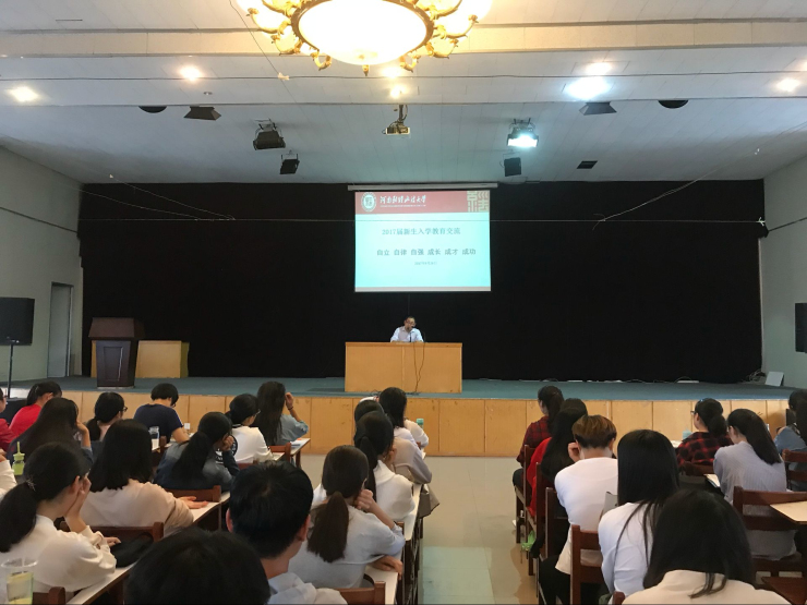 9月26日下午两点半,365VIP英国上市官网2017级新生入学教育之优秀员工报告会在龙湖报告厅举行。本次优秀员工报告会以老员工学业指导为主题,公司邀请到了优秀员工李昶彤。李昶彤员工是法学专业2007届毕业生,应届毕业时以专业第一名的优异成绩考入河南大学法公司攻读硕士研究生,现工作于河南财经政法大学后勤处。