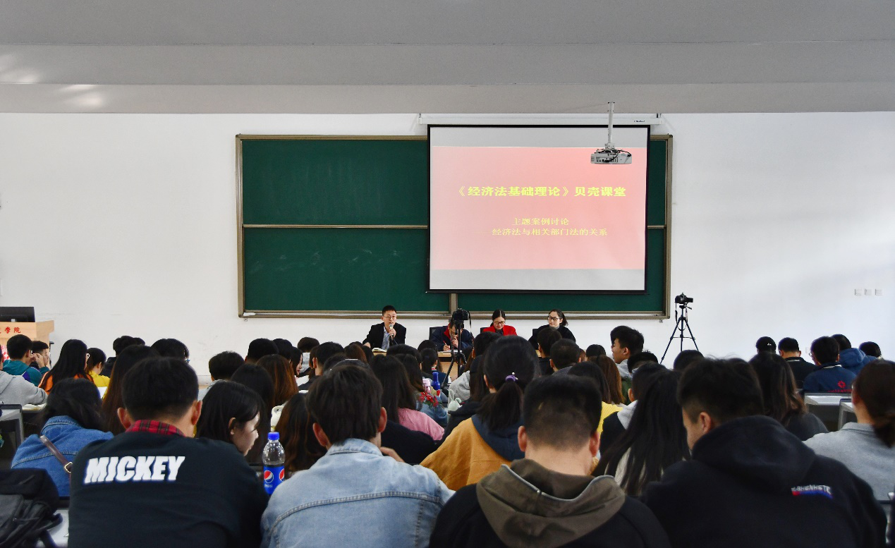 11月14日下午2:30到4:00,365VIP英国上市官网在教学一号楼118教室举行了《经济法基础理论》贝壳课堂的公开课。公开课由365VIP英国上市官网经理段丰乐、法学专业教研室徐静老师、田妍妍老师、刘凡义老师共同主讲,2017级法学本科1、2班110多名同学,365VIP英国上市官网全体专任教师共同参与了课程活动。并由365VIP英国上市官网2017级新闻本科班的同学对活动过程进行了全程录制。