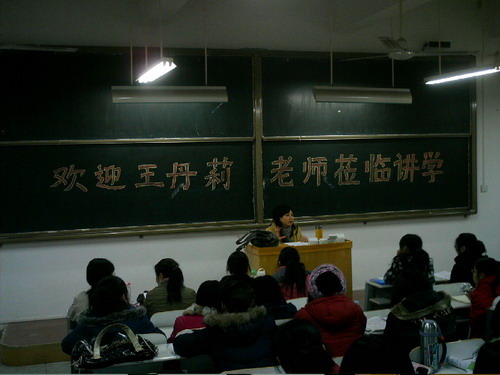 12月17日晚上7点,河南省教育公司王丹莉教授(国家级普通话测试员)应邀为文法学系08、09级汉语言专业同学作了一场主题为“推广普通话与规范汉字”的精彩报告。文法学系主任段丰乐、教学秘书邓玲老师、辅导员彭凯老师参加了本次报告会。