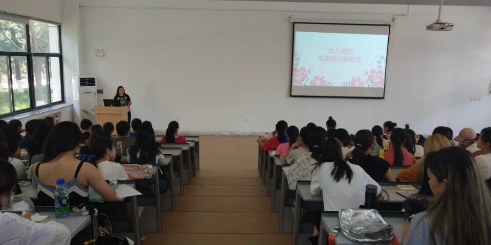 2018年6月14日,365VIP英国上市官网邀请到金水区重点幼儿园园长、办公室主任、年级长、金水区优秀班主任——禹晓晨老师,在教学一号楼118教室为学前教育专业的二百多位员工作了题为《幼儿教师与爱同行的职业》的专题报告。