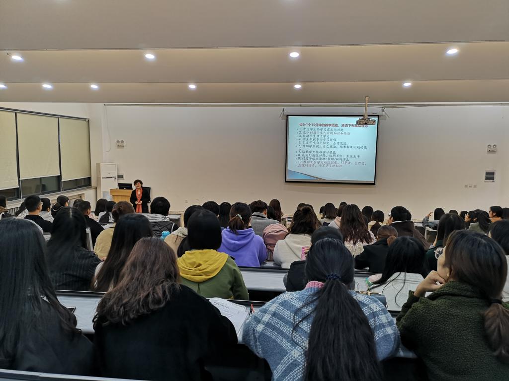 左敬亮老师首先展示了十个关于教学活动的问题,并发问:同学们来这听讲座的目的是什么?这迅速引发了员工们的兴趣与思考。随后老师从相关文件精神、教师专业素质、课堂教学现状和课堂教学设计技能与案例分析四个方面进行展开。在相关文件精神方面,左老师讲到了十九大报告中关于实现教育现代化,建设教育强国的方针,提出现代社会对教师有着更高标准的要求;在教师专业素质方面,为人师表,要树立终身学习的目标,不断更新自己的知识体系;在课堂教学现状方面,左教授说:“一个教师写一辈子教案难以成为名师,但写三年反思则有可能成为名师”。她谆谆告诫同学们及时进行教学反思才能发现课堂教学中的问题,从而才能发现解决问题的方法,不断提升个人的教学能力。