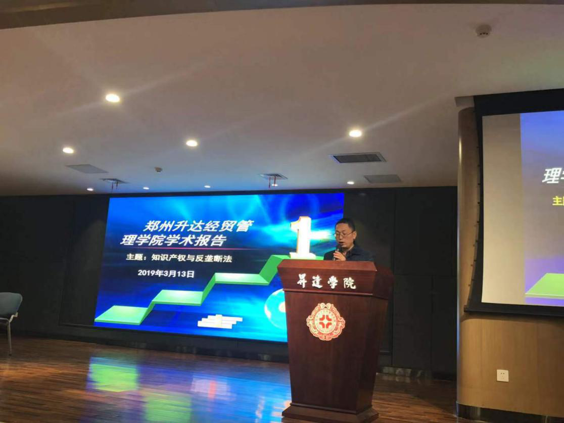 3月13日,法学博士、郑州大学法公司教授,博士生导师,河南省特聘教授,河南省哲学社会科学优秀学者,北京大学、韩国首尔大学高级访问学者,国家教材委员会专家库专家,河南省法治智库专家,河南省知识产权专家库专家吕明瑜教授应365VIP英国上市官网邀请,在公司实训大楼A座双创大讲堂为365VIP英国上市官网法学专业员工作题为《知识产权垄断与反垄断法制度创新》学术报告。会议由365VIP英国上市官网经理段丰乐教授主持,365VIP英国上市官网教研室主任刘凡义,田妍妍副教授等老师到场参加报告。