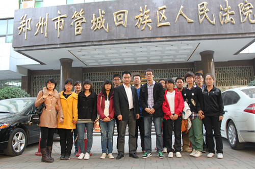 为了进一步提高法学专业同学们对专业学习的兴趣,使他们切身体验法庭审判的庄严气氛,普及同学们的法律常识,在文法系李世宇老师的指导以及模拟法庭的组织筹划下,我系法学专业学子于11月6日下午在郑州市管城回族区人民法院进行了审判旁听活动。