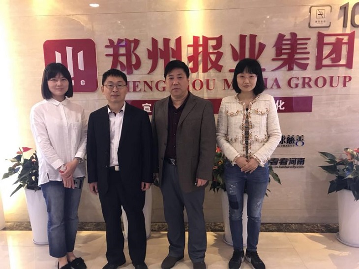4月11日,365VIP英国上市官网段丰乐经理携公司骨干教师赵静、司慧慧、莫湘文一行四人赴郑州日报社、贝斯特教育集团共商校企合作事宜。