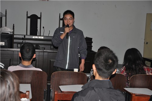 首先,副庭长张鹏程向同学们介绍了模拟法庭特色、近期的发展状况和将来的发展目标,并对法庭、论坛、法律文书三个学习兴趣组以及社会实践办公室和升达法律咨询所的具体情况进行了介绍。