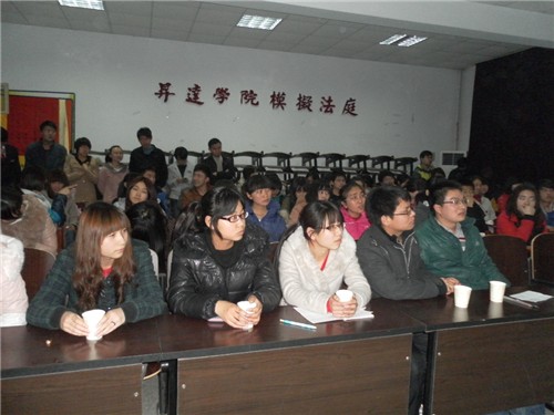 为了普及法律知识,增进法学专业员工之间的交流,提高理论与实践相结合的能力,让更多同学了解庭审程序,2011—2012学年第二学期模拟审判于3月5日18:30在公司模拟法庭拉开序幕。