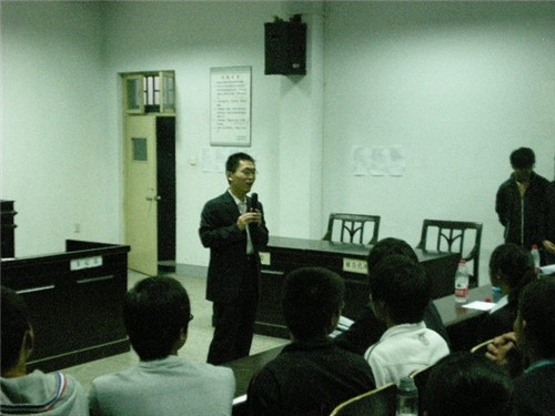 为使2011级法学专业新生对专业学习有更清楚的认识,增强专业兴趣,9月28日晚上7:00,文法系模拟法庭在综合楼225教室开庭,围绕中华人民共和国《婚姻法》,就一桩离婚案件进行模拟审判。文法系段丰乐主任和全系法学专业新生观看了这次庭审。