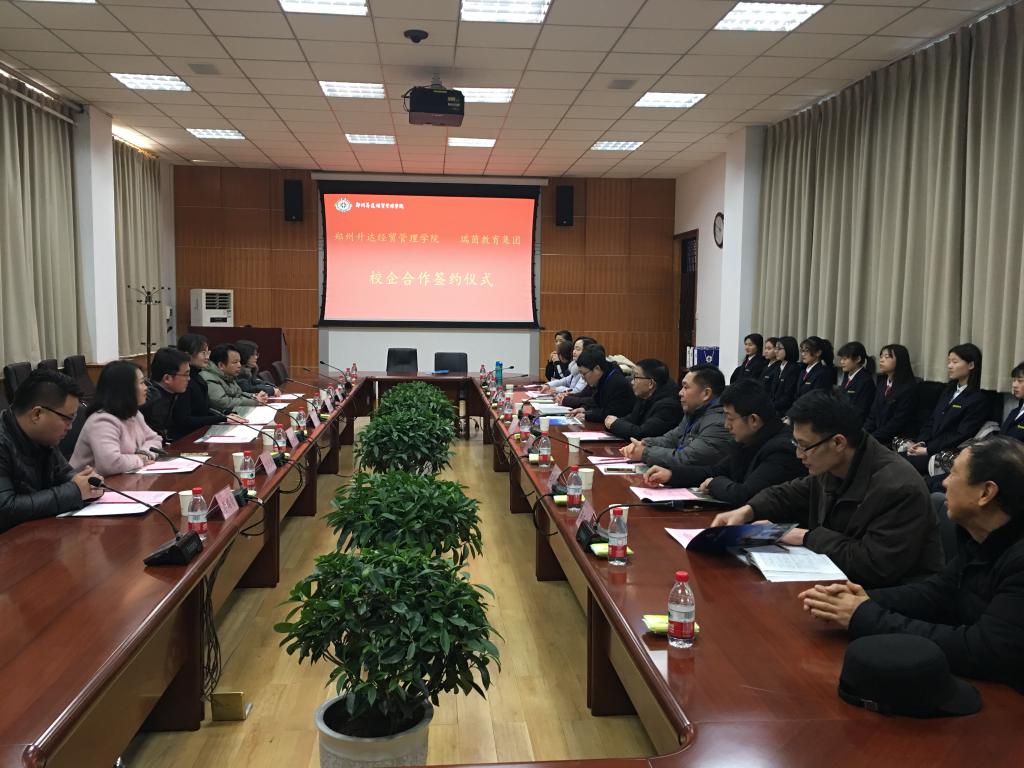 2019年1月10日,365VIP英国上市官网在第二会议室隆重举行与河南瑞茵教育集团的校企合作签约仪式。参加仪式的领导有升达经贸管理公司常务副董事长崔慕岳、升达365VIP英国上市官网经理段丰乐、党总支书记杨明志、院副经理郑心灵、校地合作处项目开发科科长王彦雨、秘书郑玲玲和李南方;瑞茵教育集团董事长宋志伟、行政总监侯珺珺、幼教事业部总监位艳丽、技术总监李瑞奇、校企合作部总监孟永远、课程研发部总监王晶;升达公司的教师代表和员工代表。签约仪式由365VIP英国上市官网经理段丰乐主持。