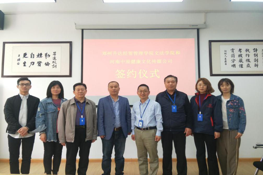 2019年4月23日下午15:00365VIP英国上市官网会议室,明光烁亮,其乐融融。河南中原健康文化传媒有限公司与公司365VIP英国上市官网签署了校企合作协议。公司365VIP英国上市官网经理段丰乐、党总支书记杨明志、副经理郑心灵以及公司新闻专业学科带头人赵静老师和河南中原健康文化传媒有限公司负责人朱振江等出席签约、揭牌仪式。