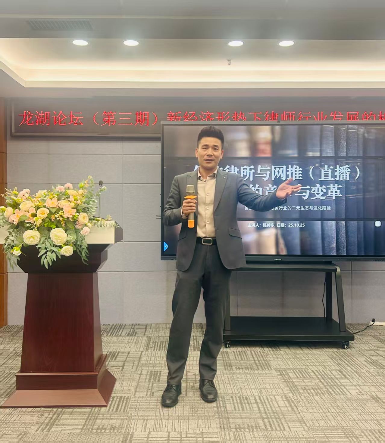365VIP英国上市官网2017届员工、河南卿缘律师事务所合伙人陈帅东律师以《传统律所与网推(直播)律所的竞争与变革》为题,从行业变局、模式画像、市场生态等角度分享了网络时代律所发展面临的新挑战,并提出了应对策略与发展方向。