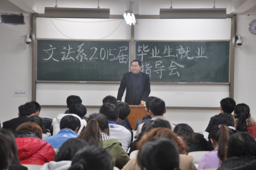 为了进一步提高我系2015届毕业生的就业意识和求职技能,树立正确的求职观和良好的心态,积极参加我系11月12日举行的专场招聘会,11月10日晚七点,我系于商管楼406召开2015届毕业生就业指导会。我系党总支副书记杨明志老师和毕业班辅导员刘建辉老师、吴艳豪老师及全体毕业生参加了这次会议。