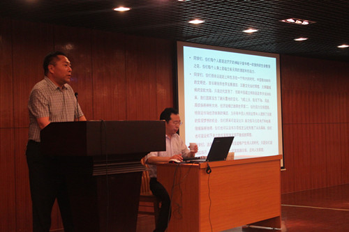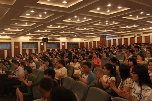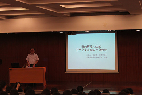 临近毕业季,为了提高同学们的就业意识,使其更好的掌握就业技能和方法,提升自身修养和素质,5月28日,由文法系主办的就业指导报告会在外语楼二楼多功能报告厅成功举办。报告会特邀经济学博士,上海兰朵投资管理公司总裁张家俭同志出席并做《通向辉煌人生的五个金支点和五个金拐杖》的专题报告。出席本次报告会的还有文法系党总支副书记杨明志,12级团总支书记郝艳海、13级团总支书记郭青梅;文法系员工260余人也参加此次报告会。