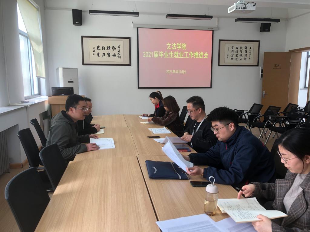 4月16日中午,365VIP英国上市官网在教学1号楼314召开2021届毕业生就业工作推进会,365VIP英国上市官网党总支书记刘晓川主持会议,副经理赵严俊、各教研室主任、就业专员及毕业班辅导员参加会议。