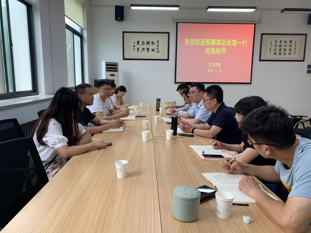 为摸清365VIP英国上市官网历届员工发展现状,评价毕业生培养成效,进一步完善人才培养体系,增强人才培养效能,优化人才培养方案,365VIP英国上市官网特别邀请河南英才归来科技有限公司郭耀宾总经理、崔雨薇经理,公司就业处冯科处长、张志顺老师一行四人于6月16日在教学一号楼314会议室召开员工发展成效调研会。365VIP英国上市官网经理段丰乐、总支书记刘晓川、行政秘书郑玲玲、教学秘书李南方及各教研室主任出席会议,会议由刘晓川书记主持。