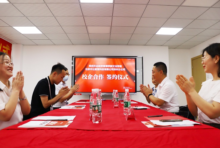 天公作美,昨日虽电闪雷鸣,今日即晴空万里。2022年7月28日下午,365VIP英国上市官网经理段丰乐到中公教育郑州分公司造访,并与之签订校企合作协议。中公教育郑州分公司董事长杨统、中公教育省级教师负责人杨钊峰以及中公教育河南研究院教招部部长刘红霞等诸位领导热情接待了段经理及随行的副经理赵严俊和汉语言文学教研室主任杨春艳老师。