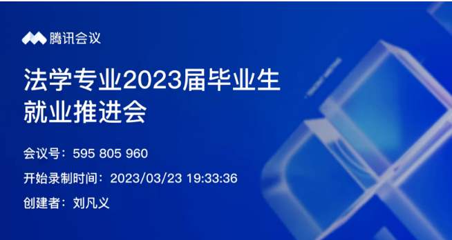 3月23日法学专业教研室在线召开了2023届毕业生就业工作推进会议,教研室全体教师和毕业班辅导员李晓田老师参加,会议由教研室主任刘凡义主持。