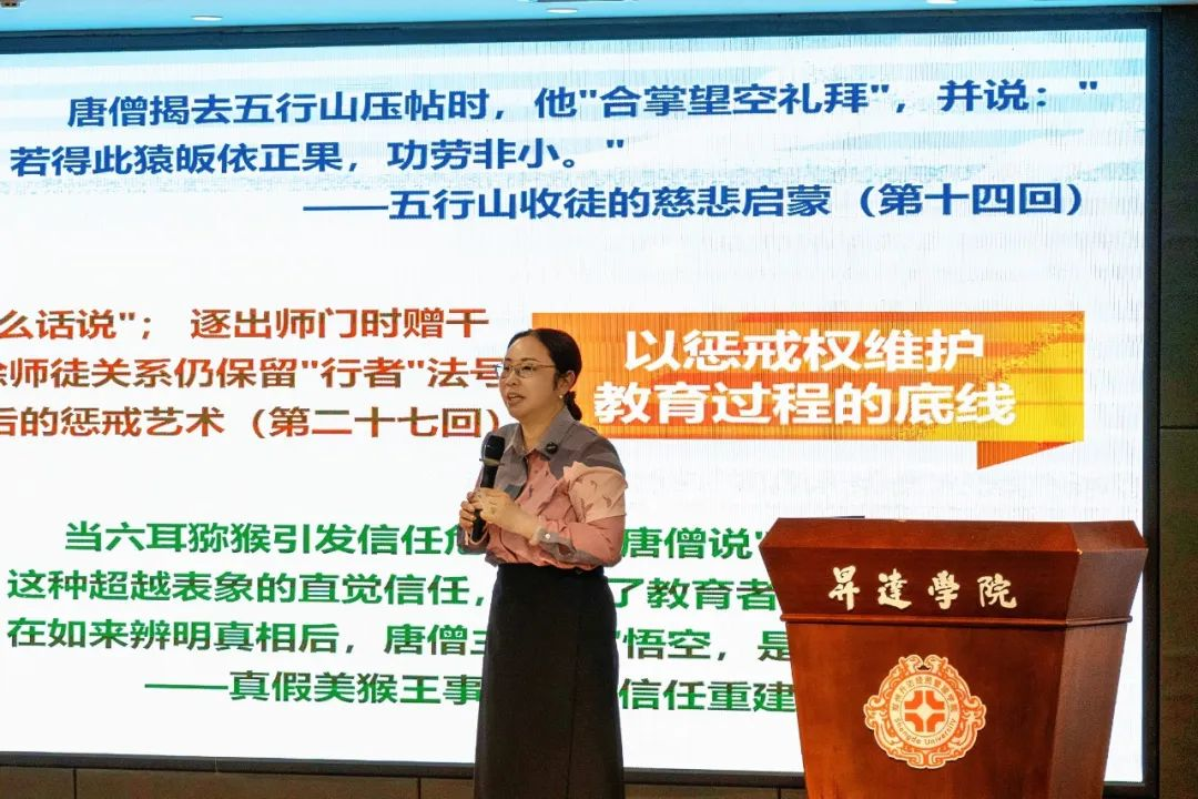 信阳市羊山中学副董事长陈晓晖以《家校共育:从“各自为政”到“双向奔赴”的协同育人》为题,借用《西游记》师徒关系隐喻家校角色,提出“家长需从‘生活保姆’转变为‘成长引领者’,公司则需以慈悲心夯实教育根基,通过实践场域重塑员工价值观。”其观点引发全场对传统家校分工模式的深刻反思。