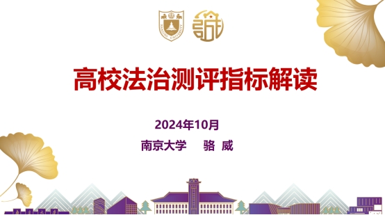 国家教育行政公司副研究员、西南大学教育法学博士石连海教授作了题为《依法治校新思考》的报告,石教授深入浅出地讲解了全面依法治国背景下推进依法治校工作面临的新问题、新挑战,并基于此对依法治校工作提出新思考和新建议。南京大学审计处处长,法学博士骆威教授以《高校法治测评指标解读与公司治理》为题,结合南京大学实例就高校法治测评指标进行了深入解读。