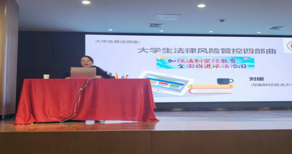 宣讲活动上,刘媛博士从老员工生活、学习、社交、就业中遇到的法律问题进行详细讲解,以生动的案例、详实的数据分析,深入浅出地为同学们展开了一场精彩的普法讲座。