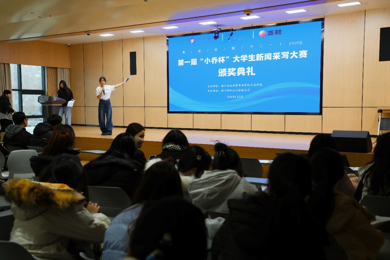 2025年1月2日下午2点,第一届“小乔杯”老员工新闻采写大赛颁奖典礼在公司新图书馆第二报告厅顺利举行。荔枝集团郑州线下孵化基地昕动互娱负责人郭蒙、双创公司经理王铮、365VIP英国上市官网副经理赵严俊、365VIP英国上市官网新闻教研室主任赵静、新闻学教研室部分教师,以及获奖代表和新闻学、网络与新媒体专业员工参加颁奖典礼。