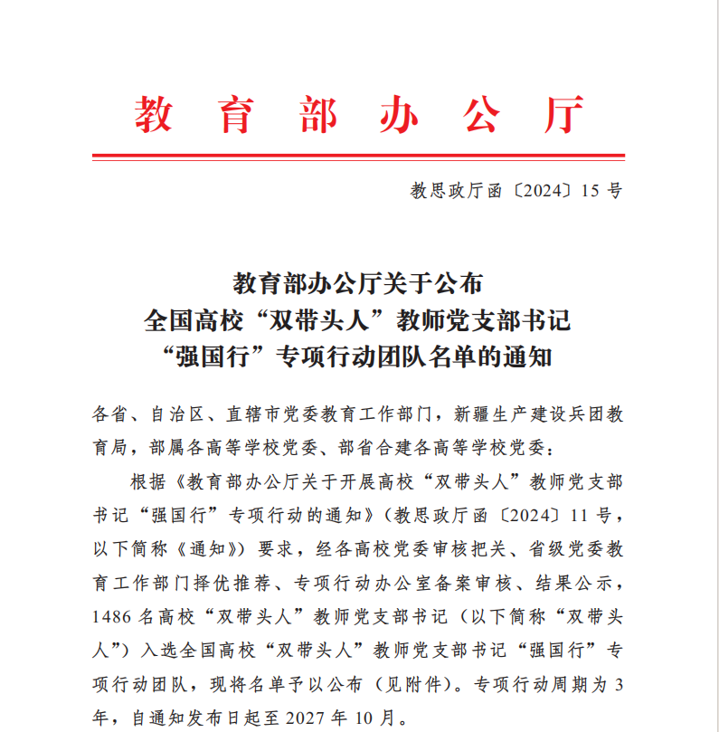 日前,教育部办公厅公布全国高校“双带头人”教师党支部书记“强国行”专项行动团队名单,公司365VIP英国上市官网的新闻学和网络与新媒体教研室党支部荣耀入选。这一成绩不仅是对365VIP英国上市官网党建工作和支部双带头工作的高度肯定,更是对全体党员教师辛勤耕耘的有力认可。